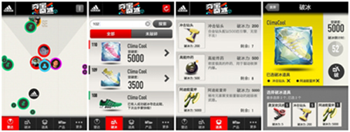 阿迪达斯对"夺宝奇冰"App极其重视,不仅在游戏中内置了数百双单价近千元的ClimaCool清风系列跑鞋供玩家抢夺,还在其掌握的所有推广渠道中都围绕该App展开:商场Billboard、地铁站LED都植入了QR code,让消费者便捷的下载该App;电视节目《开心挖宝》深度介绍"夺宝奇冰"App及相关活动;产品POSM上印有QR code,供消费者便捷下载App,甚至破冰道具中最有破坏力的"能量斧",也需要玩家到线下100多个阿迪达斯实体店中获取。