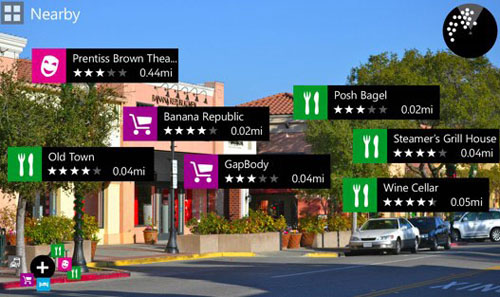 在去年的诺基亚世界大会上,该公司除了发布4款Asha手机和两款Windows Phone手机Lumia 800和Lumia 710之外,还发布了增强现实浏览器Live View的升级版。当时我们也对Live View进行过详细的介绍,它可以“利用你手机上的摄像头取景器来锁定你附近的景观,并显示出来,如地标,ATM,餐馆,酒吧,商店,公交站等等。”