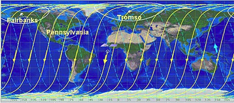 GeoEye-1卫星每天40次通过无线电波向美国阿拉斯加州、维吉尼亚、挪威和南极洲的4个地面站下传加密的图像数据。