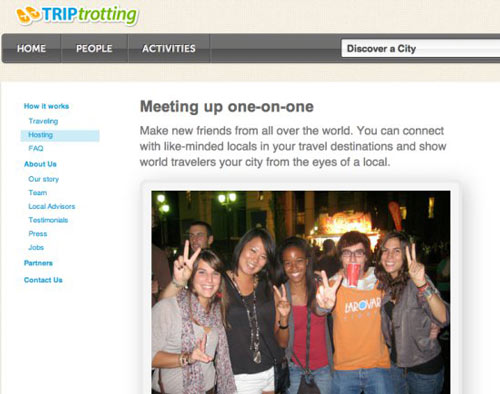 Triptrotting专注于打造将旅行者和当地人联系在一起的社区。2010年,女前投资银行家Aigerim Shorman和Shana Zheng创立Triptrotting。该公司通过兼容性匹配算法来联系旅行者和当地人,此算法由Galen Buckwalter开发,他曾任约会网站eHarmony的首席科学家。