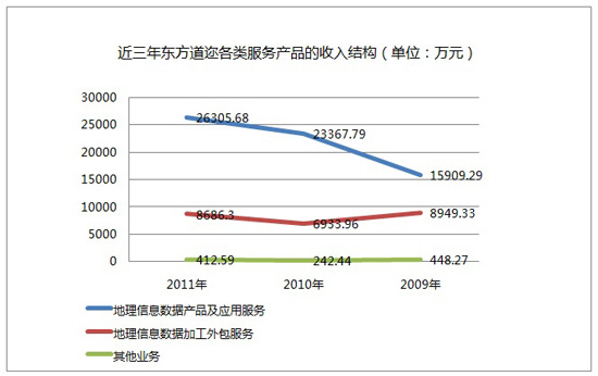 从东方道迩的招股说明书获悉,公司2009,2010,2011年的营业收入分别为25,306.89万元,30,544.19万元,35,404.57万元;营业利润分别为2,654.02万元,4,688.01万元,5,369.75万元。