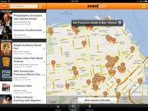 Eventster是由Tackable公司最新发布的iOS应用,主要帮助用户搜索和发现身边的活动或事件。该应用每天通过Zvents API为北美和欧洲用户呈现60万个活动或事件,内容包括音乐会、节日庆典、夜生活热点、剧院放映、体育赛事,甚至更多。