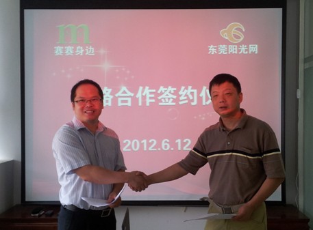 6月12日,东莞阳光网与深圳赛美无限科技有限公司签订合作协议,东莞阳光网正式成为赛赛身边的东莞独家品牌合作商,独家代理运营“赛赛”平台服务产品“阳光赛赛”。此次合作可视为东莞阳光网进军移动互联网市场的一次尝试,引领、改变本土传统媒体模式,打造一流的本地化精准信息传播媒体平台,成为第5媒体领航者之一。