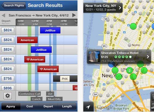 Hipmunk是一个旅行搜索服务,目前有iOS和Android应用,它适合在旅行目的地进行机票、酒店预定。和很多其它类似服务不一样的是,Hipmunk的所有信息都是通过可视化图形来展示的,对用户来说非常友好,能让用户更直观的安排自己的旅行计划。