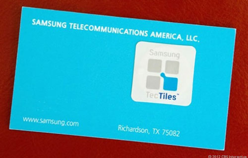 这就是三星新推出的名为“TecTiles”的卡贴,和普通卡贴不一样,TecTiles里面有一个小小的NFC(近距离无线通讯技术)芯片,手指在其表面滑过时可以感受到它。