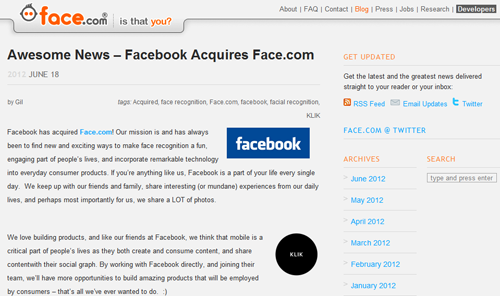 在经过了一个月的猜测之后,Facebook终于宣布收购了以色列脸部识别公司Face.com。