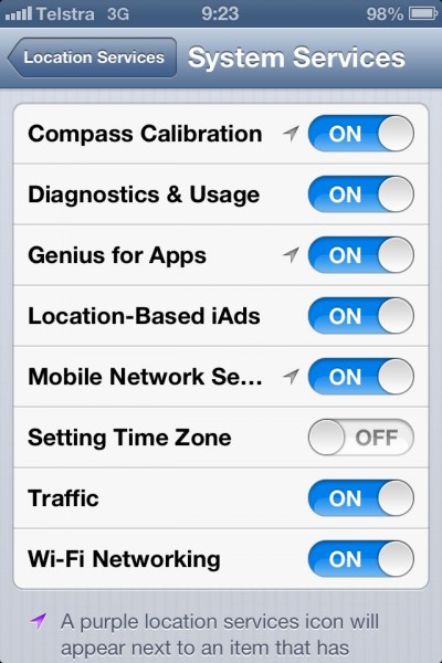 第一项特性为在系统设置“定位服务·系统服务”内增加了一项Wi-Fi网络的开关,这意味着导航定位将可依托于公共的Wi-Fi网络达到精准定位。