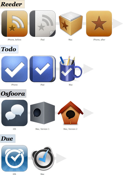 下面这种情况的美编,也属于消极怠工型的。简单的将Mac下的图标放大、缩小,就成了iOS图标了。