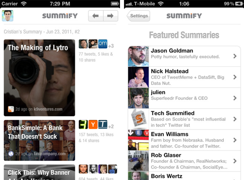Summify一开始是一款邮件服务,它根据你的Twitter、Facebook、Google Reader账号分析你的社交图谱和阅读喜好,每天为你推送5到10篇最重要且你应该阅读的文章列表。产品后来还推出了相应的移动应用。