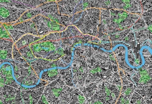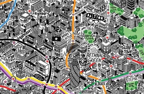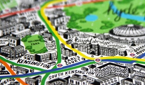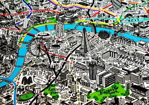 千篇一律的地图看够了要不要来点新鲜好玩的呢?英国插画艺术家Jenni Sparks绘制的手绘风格地图让人看了爱不释手,伦敦的每一条街道、建筑名胜、商场和本地人钟爱的酒吧都有明确的指示和标注,这样一个浩大的工程中每一个细节Jenni都没有懈怠,充满趣味性的感觉难怪人见人爱。精美图片如下图所示: