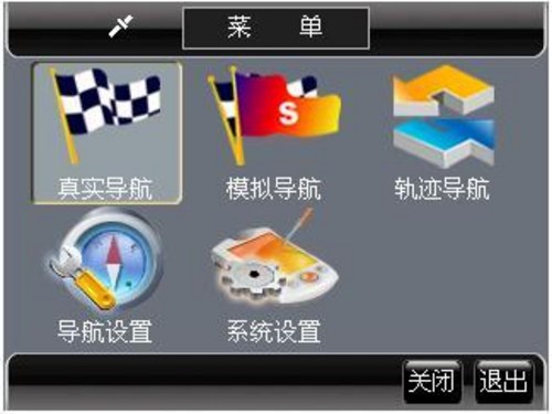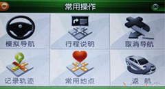 四维图新的导航界面比较简单,除了主地图部分之外,在默认的状况下,屏幕上显示的按键数与功能按键都要少于凯立德导航软件,当然可能会造成用户使用上的不便利,同时能够更清晰、简要的显示导航软件,可以说有利有弊。但是不得不说在菜单栏中四维图新的功能设计太过繁琐,虽然有很多功能可以供用户选择,但是因为没有进行分类,所以整体看上去多且杂。