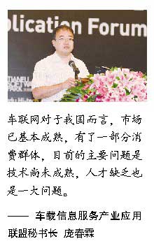 在当前形势下,我国车联网标准的制订刻不容缓。庞春霖向记者介绍说,目前车载信息服务产业应用联盟正在制订一些国家标准和联盟标准,希望通过联盟把全国的资源整合起来,建立标准、获得专利并取得技术成果。据他透露,他们将在今年年底公布两项标准。
