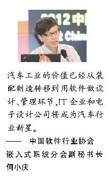 车辆的安全控制体现在车载信息服务系统的智能化上,因此,系统开发至关重要。中国软件行业协会嵌入式系统分会副秘书长何小庆接受记者采访时称:“汽车工业的价值已经从装配制造转移到软件,IT 企业和电子设计公司是汽车行业新星。”