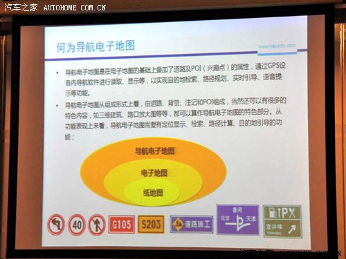 此后电子地图不断升级,完善的内容检索功能以及规划引导功能被植入其中,不知不觉中,导航地图这一概念随之成型。然而发展之快让很多人还在把导航地图误以为曾经的电子地图,导航电子地图是在电子地图的基础上叠加了道路及(POI)兴趣点属性,通过GPS设备内导航软件进行读取,显示等,以实现目的地的检错,路径规划,实时引导以及语音提示等功能。