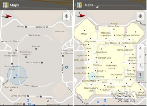 大家都知道谷歌对于自家的导航软件非常重视,以至于谷歌地图从原来苹果的内置软件,变成了如今阻击苹果的有力武器之一(谷歌跟苹果的操作系统战争大家都懂,这里不用多说),Android用户对于这个全新功能一定会很高兴,特别是一些使用Android系统但又是路痴的朋友,有了它,在一些大型的购物商场和车站机场等等场所就不用怕找不到ATM和卫生间,还有某某店铺了。但是由于服务范围的限制,现在只支持美国和日本的一些主要车站、商场和机场等场所。