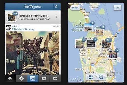 近日,热门分享应用Instagram针对iPhone和安卓用户发布了3.0版本更新。该版本依旧支持中文,除了经过优化的用户界面之外,最让人激动的莫过于其中新增加的“相片地图”(Photo Map)功能。