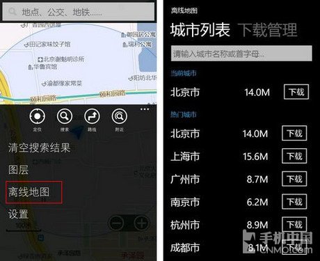 WP版百度地图的一大亮点就是支持下载离线地图包,这样一来,即使实在网络不佳的环境中,用户依然可以正常的使用地图进行定位。目前百度地图离线包根据省份不同进行了划分,用户可以根据自己的需要来选择性下载,这也是国内为数不多的一款支持离线的地图软件。