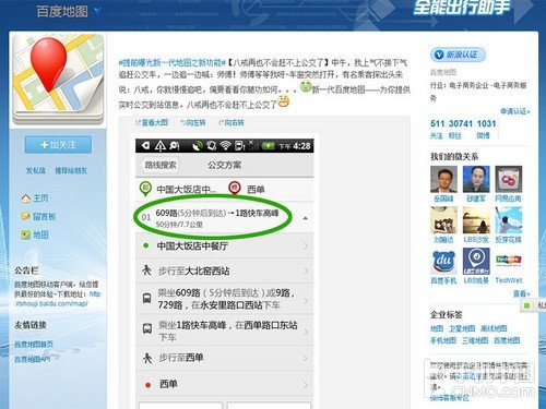 百度地图近日在官方微博上发布信息,透露了“新一代百度地图”的一项新功能,即实时公交到站信息。从这条微博的配图上我们可以看到,在公交线路名称后的显示了该路公交的到达时间,而从界面信息来看,这张配图是一张Android系统手机的截图,这是否意味着Android版的“新一代百度地图”即将发布呢?