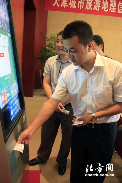 按照计划,从今年8月到12月,全市将中心城区及滨海新区的重点酒店、旅游景区、大型商场和商业综合体、政府机关、交通枢纽、地铁站点,文化中心、写字楼、金融机构等场所设立终端机800台。2013年在机场、海港等处再增加700台终端设备,至2014年,本市将有3500台终端机遍布全市。(霍艳华 王宽)