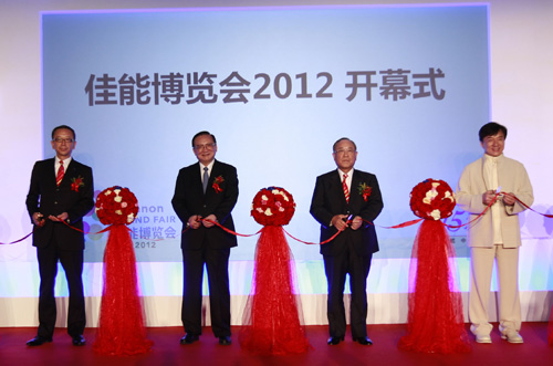 前国务委员、中日友好协会会长唐家璇、常务副会长井顿泉及佳能(中国)合作伙伴成龙,作为曾为佳能(中国)发展做出积极贡献的各界代表,应邀出席了开幕式,并与佳能股份有限公司董事会主席兼首席执行官御手洗冨士夫、佳能(中国)有限公司总裁兼首席执行官小泽秀树共同出席了剪彩仪式。在结束北京站的展览后,以“色彩佳能、精彩人生”为主题的佳能2012博览会还将在11月1日至4日、12月6日至9日分别在成都、广州两地展出。
