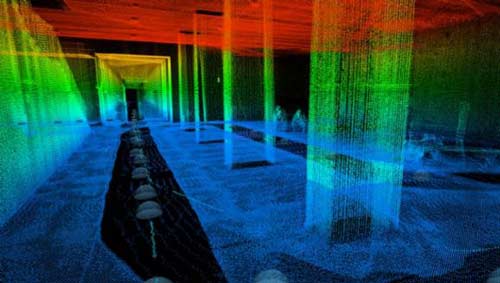 当手推车移动时,各个相机都将进行拍摄,同时激光扫描仪也会记录下走廊的水平以及垂直尺寸。而由扫描仪收集的数据将为用户创建一个走廊可持续显示的三维地图。