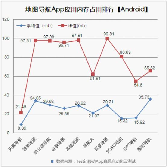 内存消耗:天翼导航最优 图吧导航最差