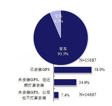 在上述拥有车辆的被访者中,58.0%表示爱车“已安装了GPS”,其他42.0%则未安装。