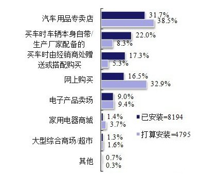 车载GPS普及率高 购买途径主要来自汽车用品专卖店和网络交易平台