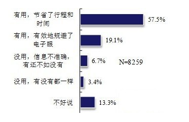 在已安装车载GPS的车辆中,近八成被访者认为GPS对其“有用”,其中绝大多数认为能够为其“节省行程和时间”,也有一部分被访者认为帮助其“有效地规避了电子眼”。