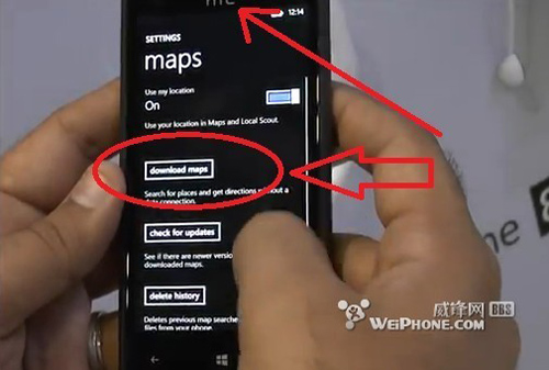 图片中展示的是HTC Windows Phone 8S的上手视频截图,在操作者进入手机设置的地图菜单里时,外站注意到了“download maps(下载地图)”按键。按键下的说明文字为:“无需网络连接即可搜索地点、找到方向。”可以说,几乎可以百分之百地确定,Windows Phone 8将原生支持地图下载离线使用功能了。