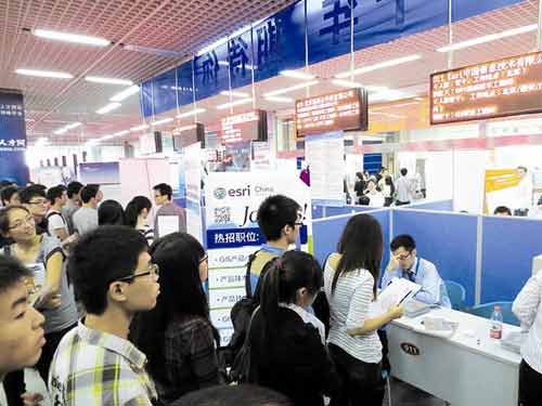 10月13日,中国地理信息产业专场招聘会在光谷资本大厦举行,数百家国内知名的地理信息产业企业齐聚,8000名应届大学毕业生进场求职。招聘会上,许多90后武汉学子一改北上或东南飞就业的惯例,考虑到武汉房价等生活成本较低,越来越青睐留在武汉发展。