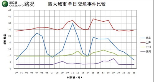 众所周知,交通事件是造成暴堵的重要原因。一般发生交通事件的路段,堵车动则超过10公里。根据交通部的统计,国庆长假期间共发生交通事故68422起;而根据凯立德路况的统计,9月30日是交通事件发生最多的一天,而10点到12点则是最高峰,平均每小时发生交通事件超过1000起。