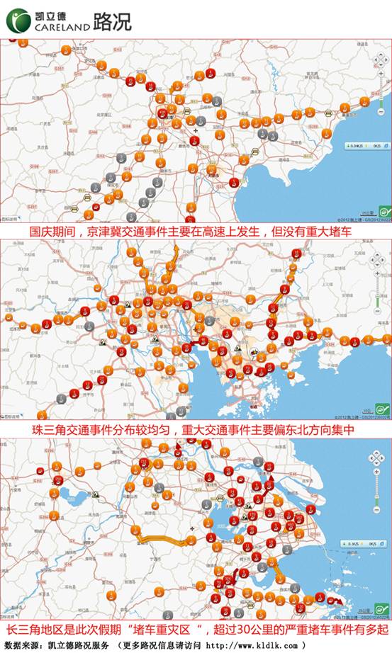 注:凯立德路况的交通事件,除了交通事故之外,还有道路管制、道路施工、禁行等可能导致拥堵的事件。