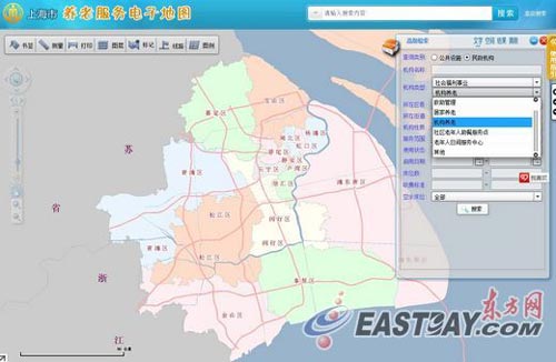 今天是重阳节,上午,上海市养老服务电子地图正式开通运行,在这张电子地图上,申城各区县养老设施“一目了然”,养老服务“一应俱全”,实现了养老办事“一键通”。记者了解到,即日起,市民只需登录市民政局官方网站,通过选择区县、街镇和所需养老设施,或者直接输入自己居住地址,即可查找就近的养老机构、日托机构、老年人助餐点、居家养老服务社、为老服务中心、老年活动室、老年人维权机构、老年学校等。