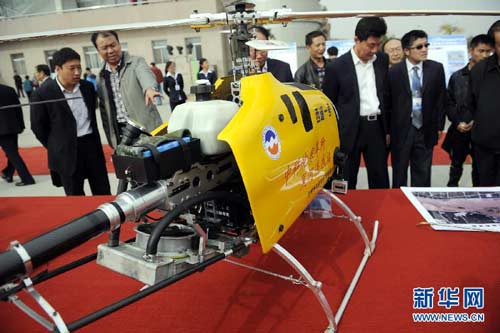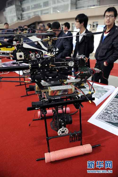 10月23日,观众在观看展出的各类“无人机”。当日,宁夏地质矿产勘查开发局联合宁夏遥感测绘勘察院举办“无人机”应用成果演示会,展出固定翼、直升机、多旋翼等各类“无人机”19架,并现场进行飞行演示。