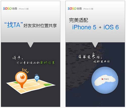 SOSO地图(找TA)2.2 (iPhone)正式发布,新版本全新推出“找TA”功能——好友实时位置共享,一键查看彼此的实时位置与距离;完美适配iPhone 5与iOS 6,屏幕变长后,视野更开阔。