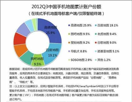 易观国际分析认为,中国手机地图市场竞争空前激烈,地图结合SNS以及生活服务的趋势已经相当明显,而在此方面百度、腾讯、搜狗等互联网巨头占尽先机,对传统手机地图厂商来说不得不说是相当严峻的挑战。