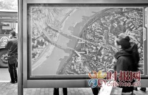 昨天网友“山水过客”发微博称,早上9点过,他在渝中区往江北的上清寺车站等车时,看到站牌背面增加了一幅标有所在站点及附近公交站点的3D地图。