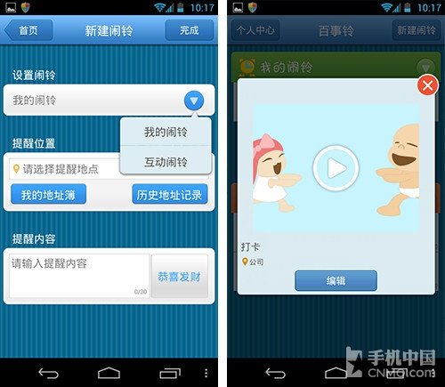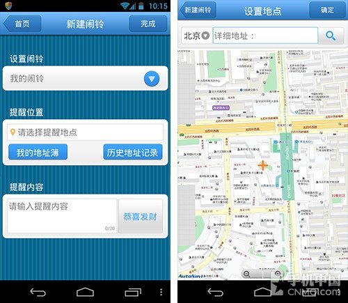 除此之外,你还可以用百事铃做很多事,比如上班打卡,到了公司百事铃可以自动提醒你打卡。路过取款机,百事铃可以提醒你今天该取钱了,路过超市,嗯,老婆让买的黄酱都忘不了,只不过设定闹铃现在还需要在地图上点点,没有场所的分类还显得不够智能。