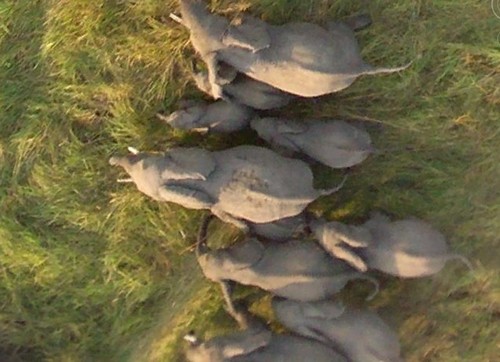谷歌地球上还上传了5万张动物的照片,选择一个大陆,不断放大,就可以看到高清晰度的动物照片,下图是非洲草原上的大象一家。