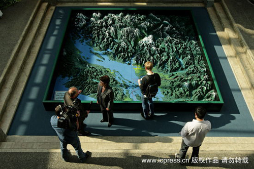 当地时间2009年10月5日,加拿大2010残奥会综合安全组,浮雕地图一部分。这是世界山最大的浮雕地图,由英属哥伦比亚省的一个伐木工人制作,使用了大约1百万块木头,约6000平方英尺。