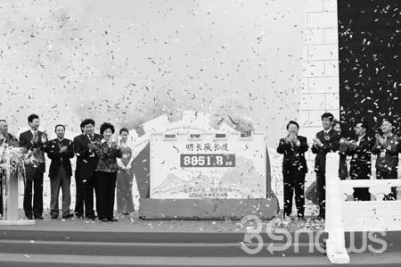 9. 明长城资源调查最新数据公布。根据国务院授权,国家测绘局联合国家文物局在北京八达岭长城举行新闻发布会,公布明长城总长度为8851.8千米(如图⑤)。中央各大新闻媒体进行了大规模报道,引起社会广泛关注。此外,国家测绘局联合住房与城乡建设部向社会公布了我国第三批著名风景名胜山峰高程数据。