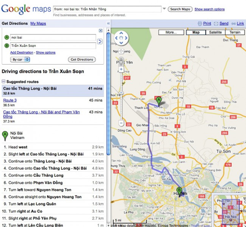 3sNews讯,据媒体报道,在一些亚洲和远东国家,Google Maps一直缺少导航功能,因为他们没有道路的行驶方向数据,但随着越来越多的人使用Google Maps Maker创建详细的行驶方向、道路优先权、限速和单行道数据,使得Google Maps可以在以下国家提供导航服务了(图为河内的道路导航):