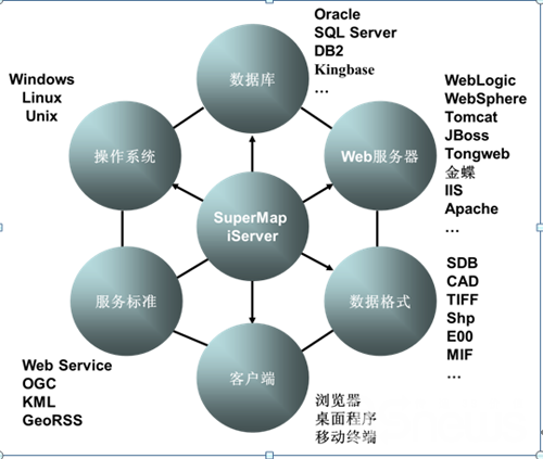 图3 SuperMap iServer支持的操作系统、数据库、中间件等