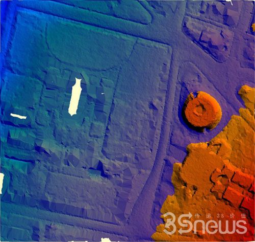 研究震后海地的科学家对使用LiDAR感到非常高兴。LiDAR的原理是发出一个脉冲,测量光返回航天器的速度。因为光从高点返回的速度比从低点返回的速度要快,返回的光的集合就构成了一个3维图像。如图1中所示,蓝色表示位置较低的地方,绿色表示位置较高的地方。
