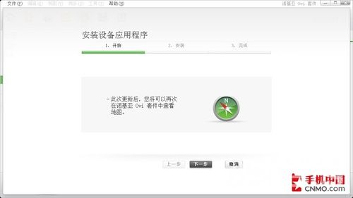 下面就进入到了导航软件Ovi Map的更新过程,此过程非常简单,只需按照提示操作即可。