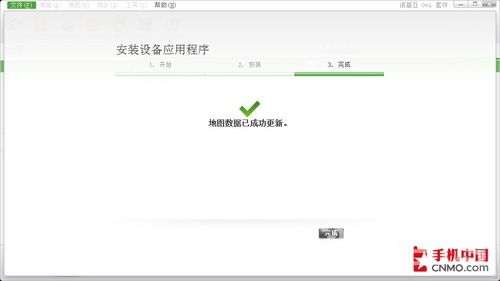 出现“地图数据已成功更新”就表示导航软件的升级已经成功了,现在我们的整个过程也进行了二分之一了。接下来,我们要做的就是为我们的导航软件下载本地的地图文件。这里需要说明一下,如果不下载本地地图文件,那每次导航都要耗费GPRS流量,如果用户没有办理套餐或者超出套餐,那花费的话费将会相当巨大。