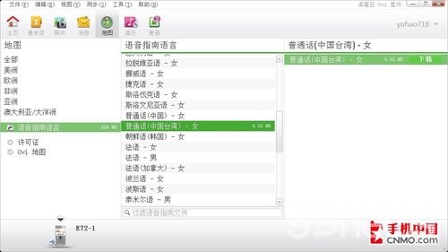 下载安装好地图文件之后,接下来要做的就是安装语音指南语言,这里笔者选择了“普通话(中国台湾) - 女”,用户依照自己的平时习惯选择即可。