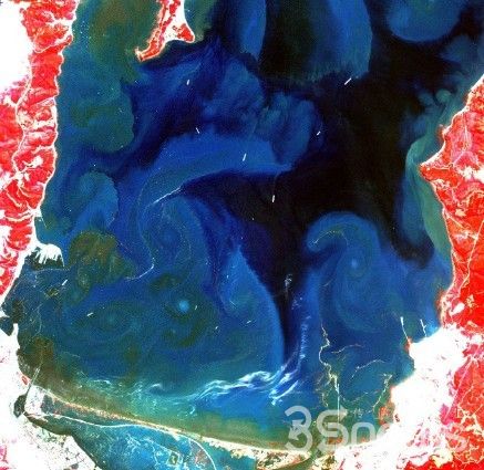 该影像图为地震发生数小时后的海洋影像,该水域中的洋流状况清晰可见