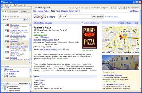 另外,Google Earth里整合了一个基于WebKit核心的浏览器(类似Chrome),在你点击链接之后可以不离开Google Earth软件直接浏览。